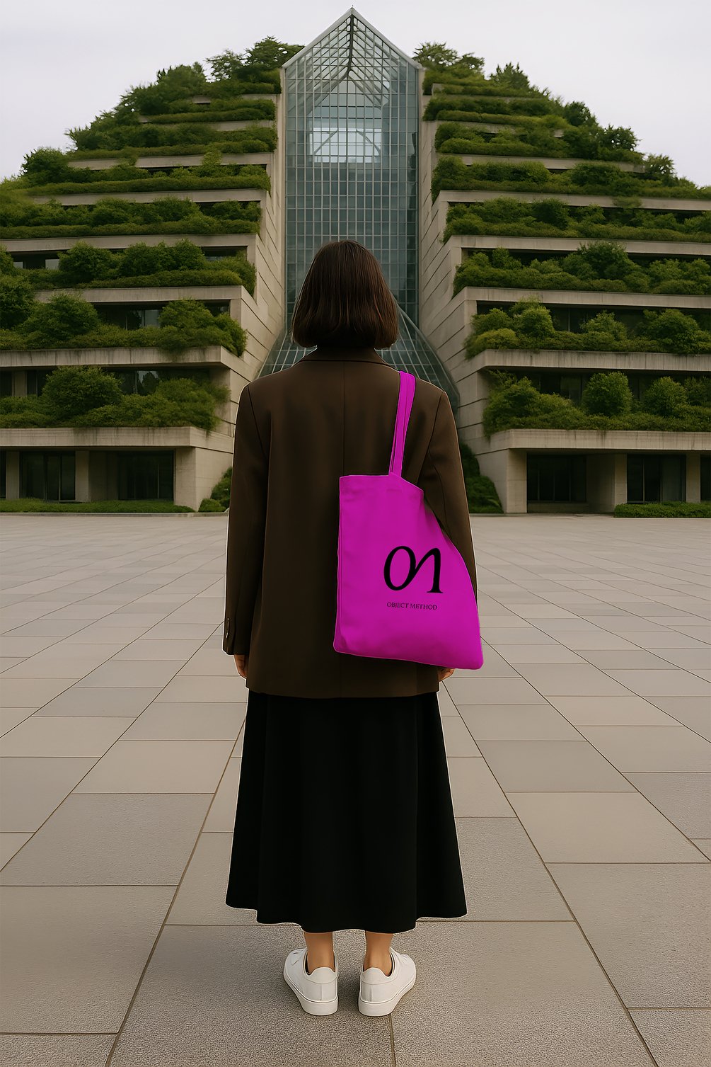This premium mockup features a canvas tote bag captured in soft daylight outside an architectural building, with clean lines and warm shadows adding depth and realism. Designed for polished brand presentations, product reveals, or lifestyle storytelling, it’s perfect for showcasing logos, type, or graphic designs on fabric.